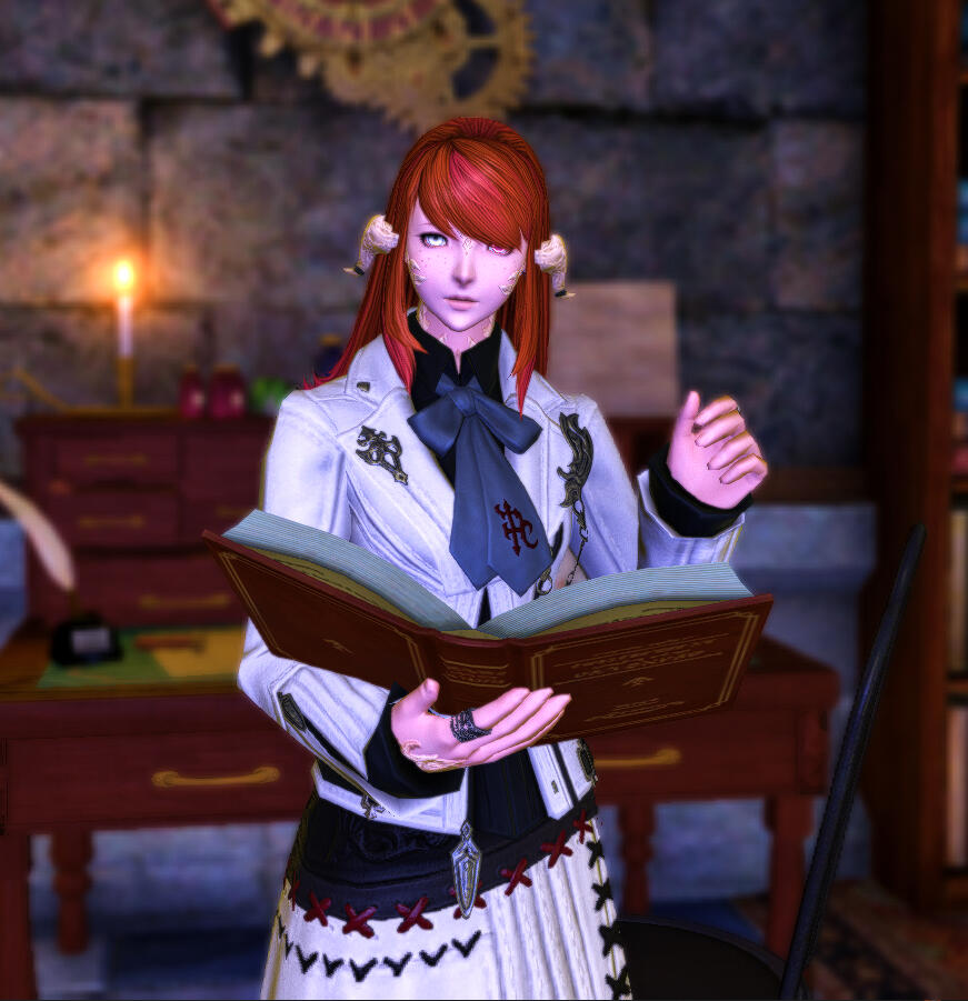 Archon Thasadore "Thas" of Arda is arguably one of the most influential scholars in the field of Aetherology. After completing his early education at The Studium, Thas entered into the field of research. His unique perspective as a Golemore born Viera enabled him to make unprecedented advances in all of the aether based sciences. His lifetime of work has led to the development of many theories that are considered the foundation of modern Aetherology. He was awarded Sharlayan's highest honor, after more than thirty turns of scientific innovation led to advancement of the peoples of the star as a whole.In the time since ending his formal education, Thas has continued to be of service to the star by passing on his wealth of knowledge as an adjunct professor at The Studium. Between teaching assignments, he provided his services to The Forum as a Gleaner. Most recently, the Sharlayan citizen has taken a keen interest in his decades long research into the fauna of Coerthas and Dravania. His free time is usually spent reading, collecting tomes, or with his brother and cousin.
