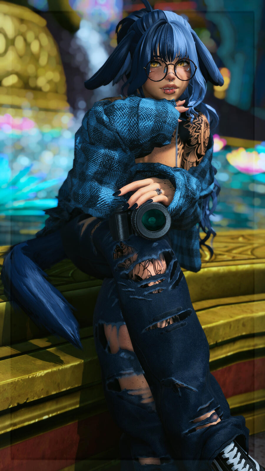 S'cylle Aldmiir is a sweet, hyper blue-haired Miqo'te who is well-known across Etheirys, having made a name for herself as a superstar photographer. Being raised in Thavnair meant that she learned the traditional art of Dancing at a young age, and has honed those skills as she's grown older and experienced more of life. Nowadays, she spends her time taking photo commissions and teaching others the arts of both photography and Dancing - when she isn't with her husband, Liam, and daughter, L'rika.